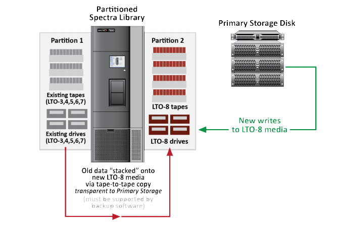 If differing versions of LTO technology are not being mixed in the same library, partitions may be used for separating data on a departmental basis, operating system or application basis according to need. Migration would be complete